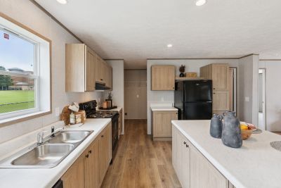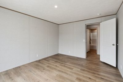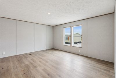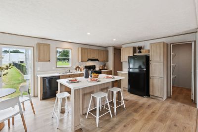 Double-wide home has 3 bed, 2 bath and 1,577 square ft. This home has an open floorplan with vinyl flooring throughout the home. The kitchen has plenty of cabinets for storage, and has the option to upgrade appliances to stainless steel. The master bedroom is spacious and the bathroom has a shower/tub combo and features a walk-in closet.