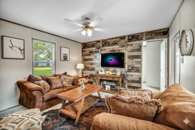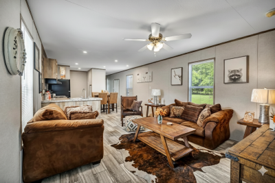This cozy single-wide manufactured home is 746 sqft! With 2 bedrooms and 1 bathroom, this home is the perfect choice for someone looking for an affordable home. This open-concept single-wide has rustic design elements, making it a perfect choice for a weekend cabin! The Deringer is a single-wide manufactured home you don't want to miss out on! Contact us for more details on our affordable manufactured homes by calling 855-550-6550 or filling out the contact form below.