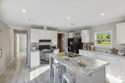 The Heritage is a stunning 3 bedroom 2 bathroom home with 1,153 square feet. It features split bedrooms with a large master suite, partial tape and texture walls, and tons of natural light, a large kitchen island, tons of kitchen storage, and so much more! Contact us for more details on this on sale mobile home by calling 855-550-6550 or filling out the contact form below.